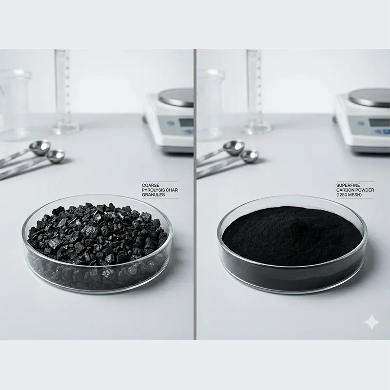 Ultradrobny młyn do pirolizy węgla (seria XSW) jest specjalnie skonfigurowany do przetwarzania sadzy pochodzącej z recyklingu pochodzącej z pirolizy zużytych opon i tworzyw sztucznych.