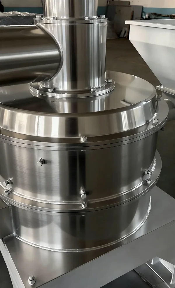 Sadza jest znana z zatykania ekranów. Nasz młynek jest pozbawiony sita. Wykorzystuje poziomy lub pionowy klasyfikator powietrza. Dostosowując prędkość obrotową za pomocą VFD, można precyzyjnie kontrolować rozkład wielkości cząstek. Zbyt grube cząstki są automatycznie odrzucane przez siłę odśrodkową i zawracane do ponownego rozdrobnienia.